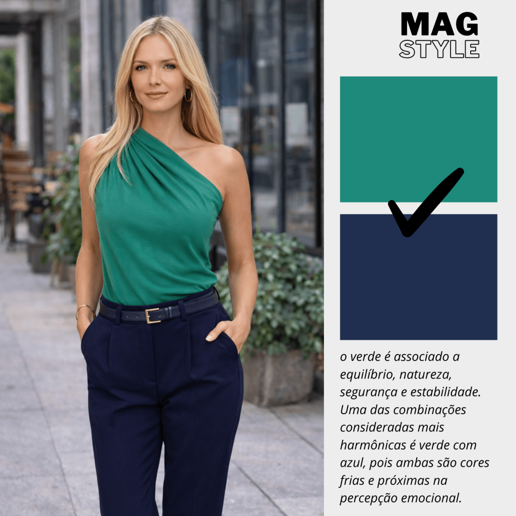 O verde é associado a equilíbrio, natureza, segurança e estabilidade. Uma das combinações consideradas mais harmônicas é verde com azul, pois ambas são cores frias e próximas na percepção emocional.