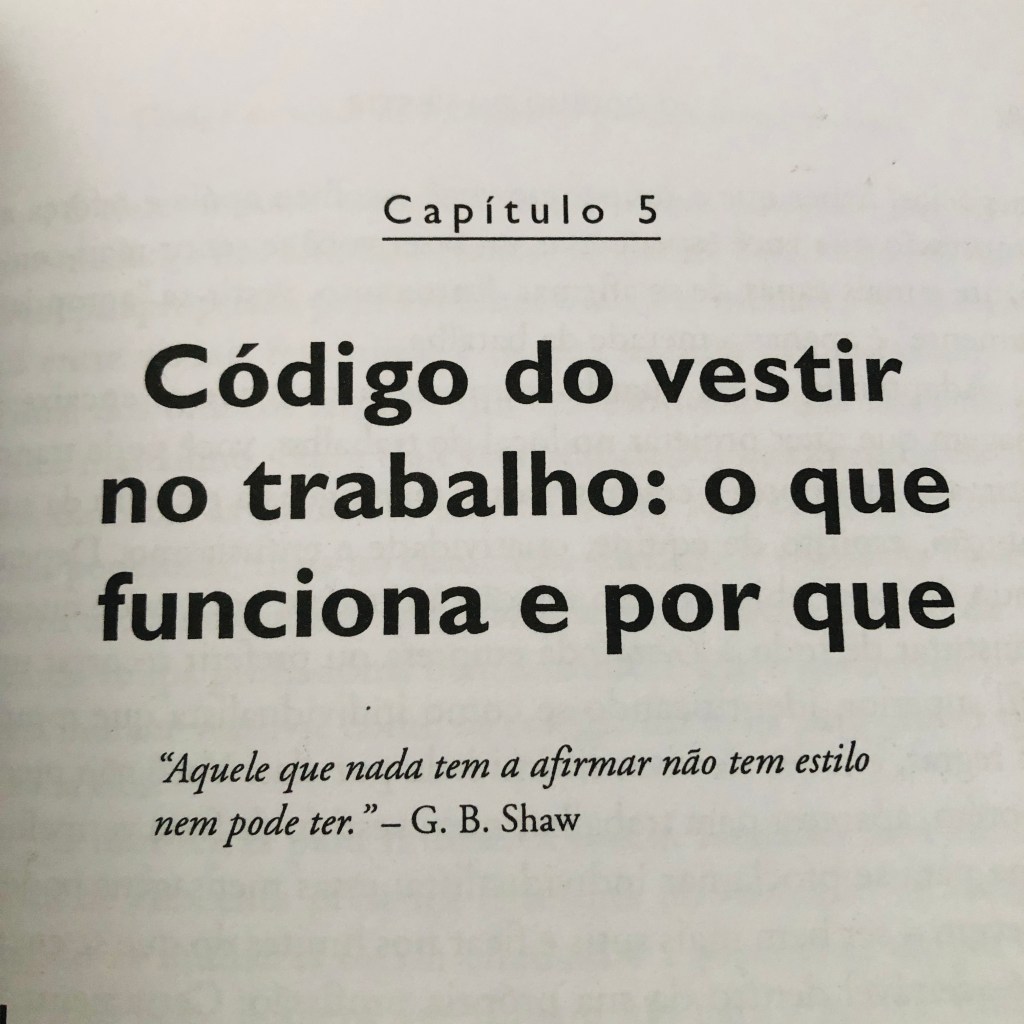 O livro O Código do Vestir mostra que a roupa vai além de uma leitura visual de cores e peças. Ele propõe também uma leitura psicológica do nosso perfil, trazendo reflexões e orientações sobre como nos preparar para diferentes ocasiões. A autora explica que a forma de se vestir constrói uma imagem que traduz determinado comportamento, e essa imagem será inevitavelmente “lida” ou “interpretada” pelos outros. Assim, nossas escolhas de roupa acabam comunicando algo sobre quem somos e influenciam a mensagem que transmitimos, mesmo quando não temos essa intenção.